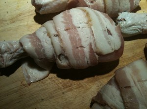 10-12 slices of bacon (nitrate and nitrite free), about 2 slices per drumstick