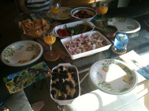 Today I will share the Peruvian kind. This meal was inspired by my friend Tina. She’s got a great “mommy” blog and she’s half Peruvian. Enter the ceviche feast! We had a great day at the beach with her new baby, Axel Cruz (how cool is that name?!?!?) and Swedish husband, Johan.