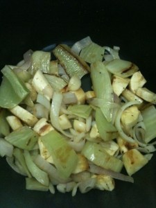 - Once the fennel mixture is done roasting, add it to the soup pot, sautéing for another 5 mins