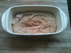 - Grease a 9.5 x 5.2 loaf pan with some coconut oil. Pour batter in. (and lick the bowl… maybe)