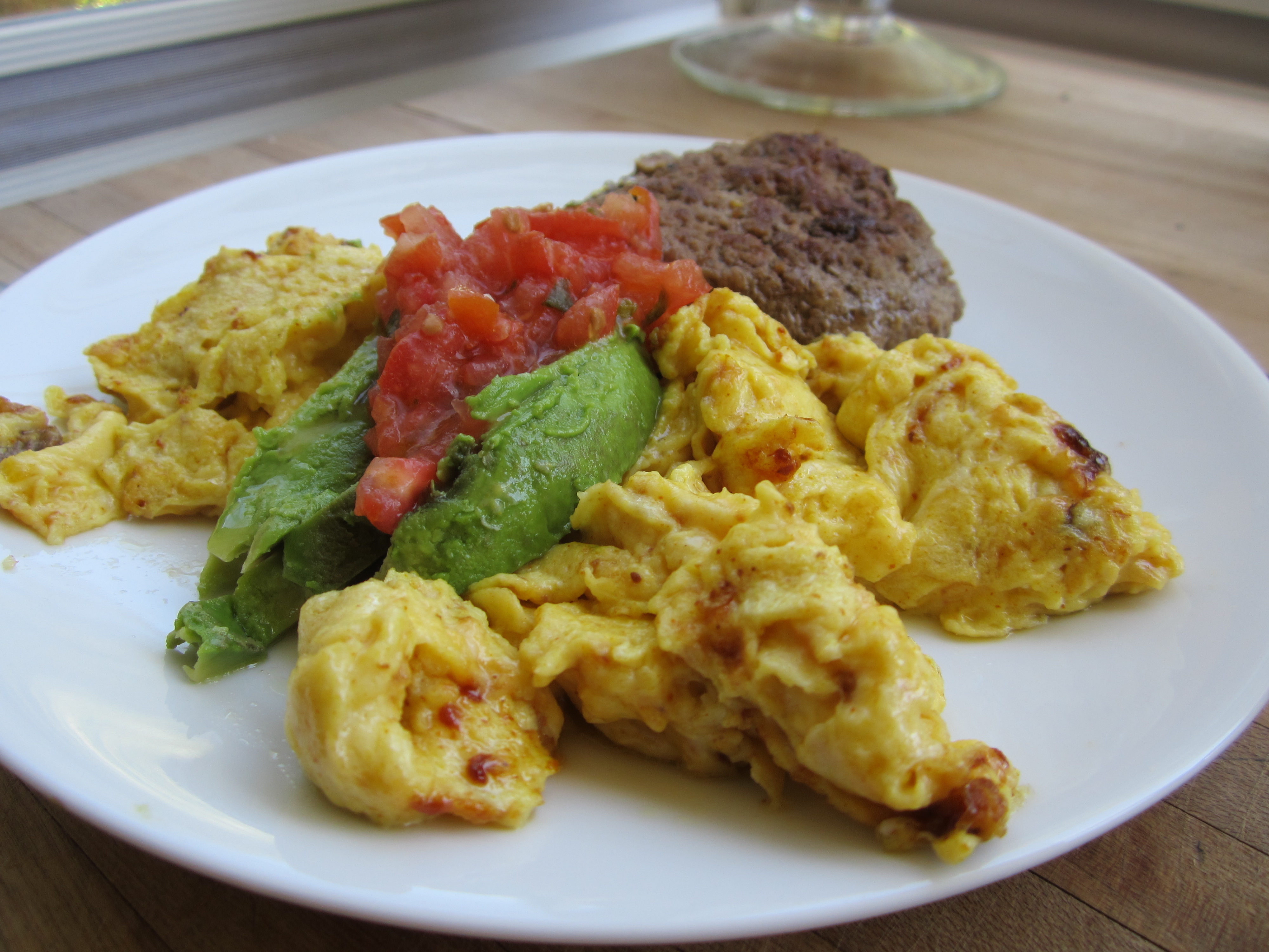 8. Serve eggs with 1 burger (wrap up the rest– LEFTOVERS!)