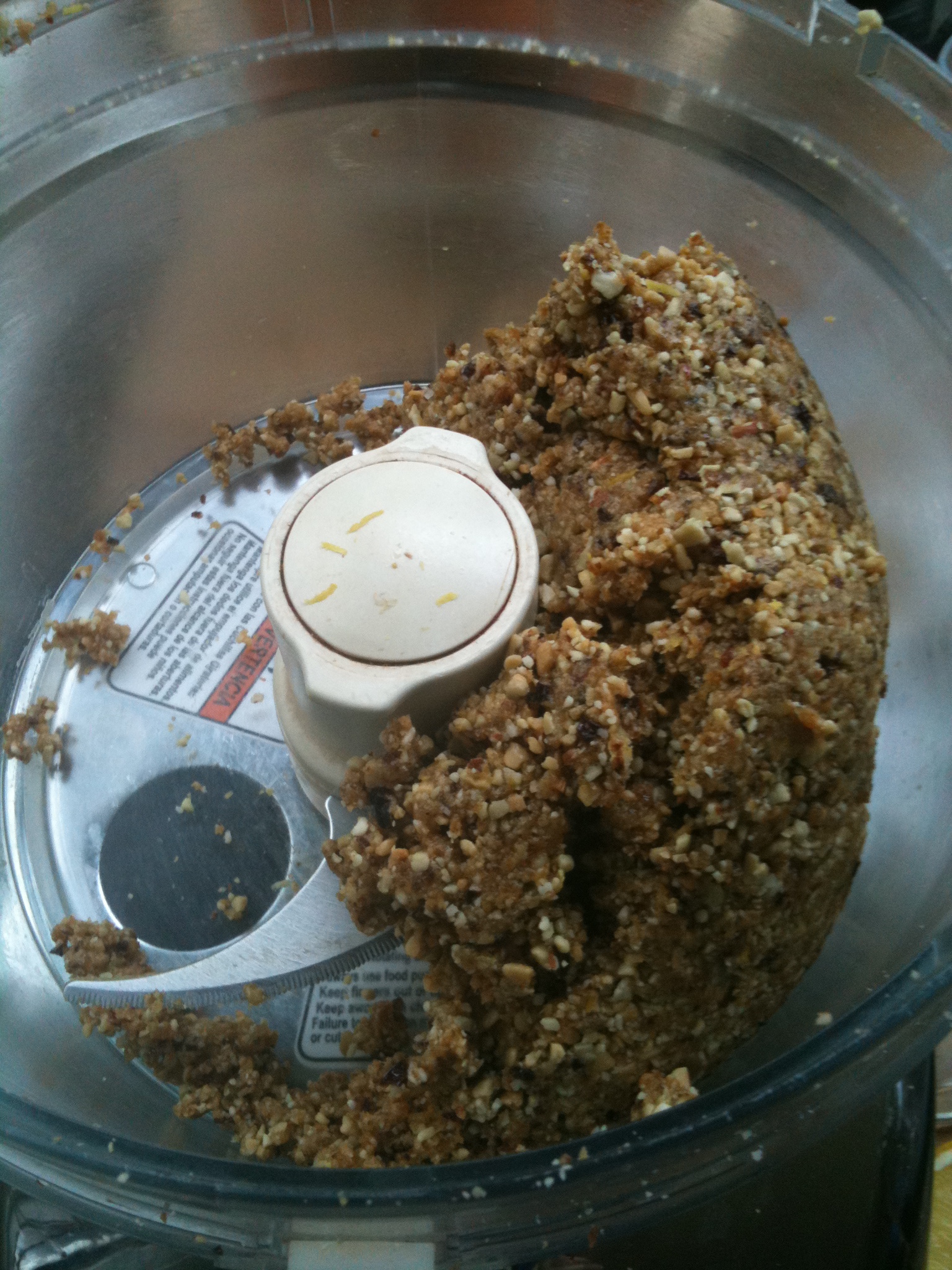 This is a variation on a snack bar that I make almost weekly… Ok, not weekly. More like monthly. They are great snack bars, somewhat akin to Lara Bars that you can buy in the grocery store. The difference with these is you have TOTAL FLAVOR CONTROL! Pick any dried fruit, nut, spice, zest, or seed your heart desires and grind it up in a food processor.