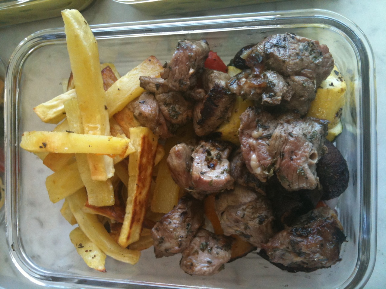 One of my favorites so far is a grilled lamb kabob. I marinate the lamb meat, some vegetables and then skewer them for the grill.