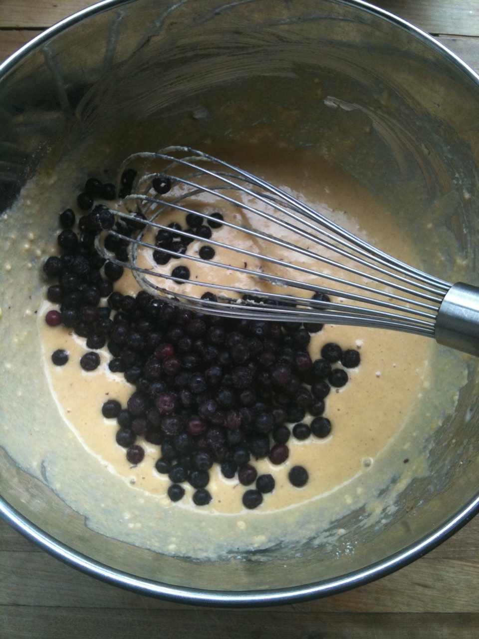 - Fold in frozen blueberries.