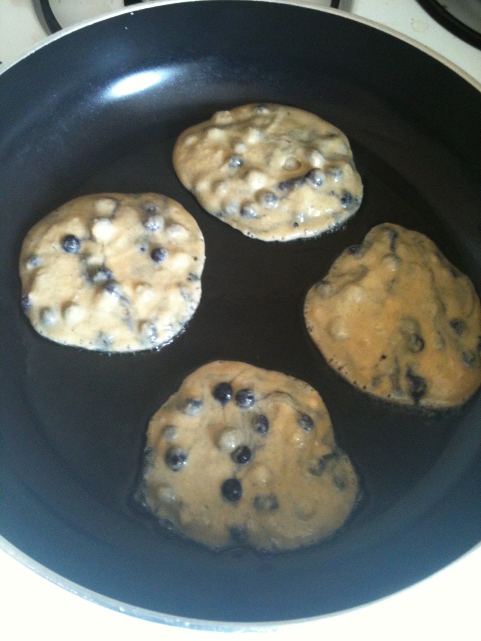 So, in the spirit of relaxing, here’s a little breakfast item that is perfect for a lazy morning. I’ve been a bit stringent on my diet lately. First there was the liver detox… then the candida cleanse. And then the wager that I couldn’t give up nut for 2 weeks. Most of my meals have been meat and veggies, maybe with some avocado, coconut, etc. I’ve had some plantains a couple of times. ANYWHO… it’s been a little bit limiting. So I relaxed with the food thing this weekend and made some blueberry pancakes!