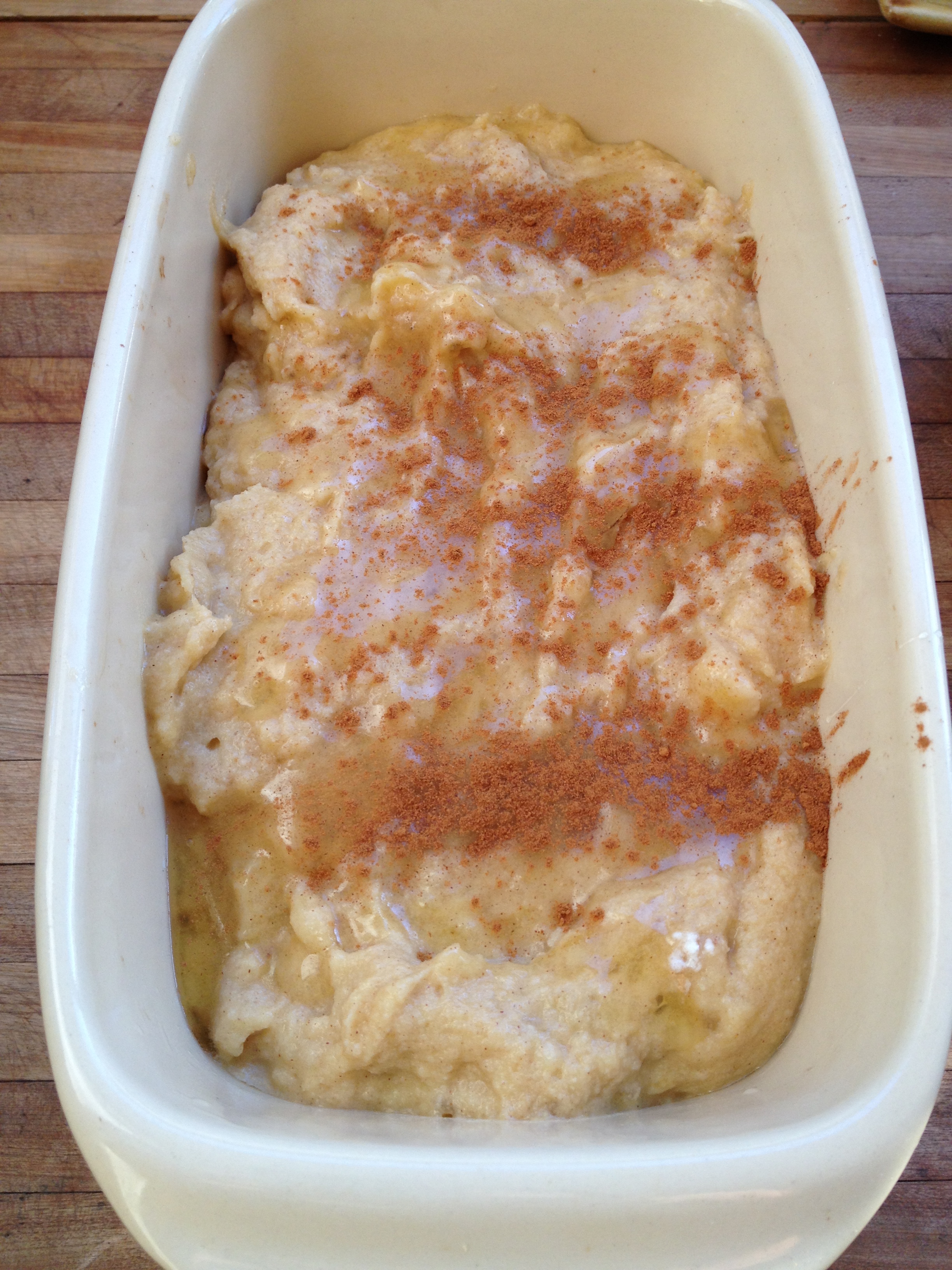 - Add flours, baking soda, cinnamon, salt. Mix thoroughly.