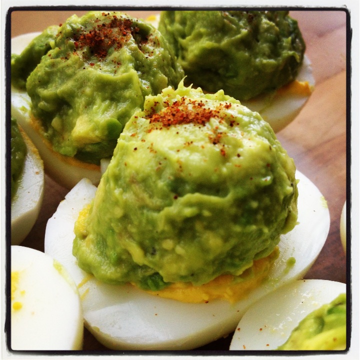 - In another bowl, mash together avocado, red pepper flakes, garlic.