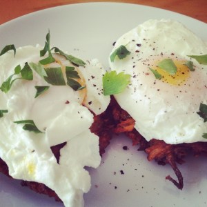 Poached Eggs with Yam Latkes