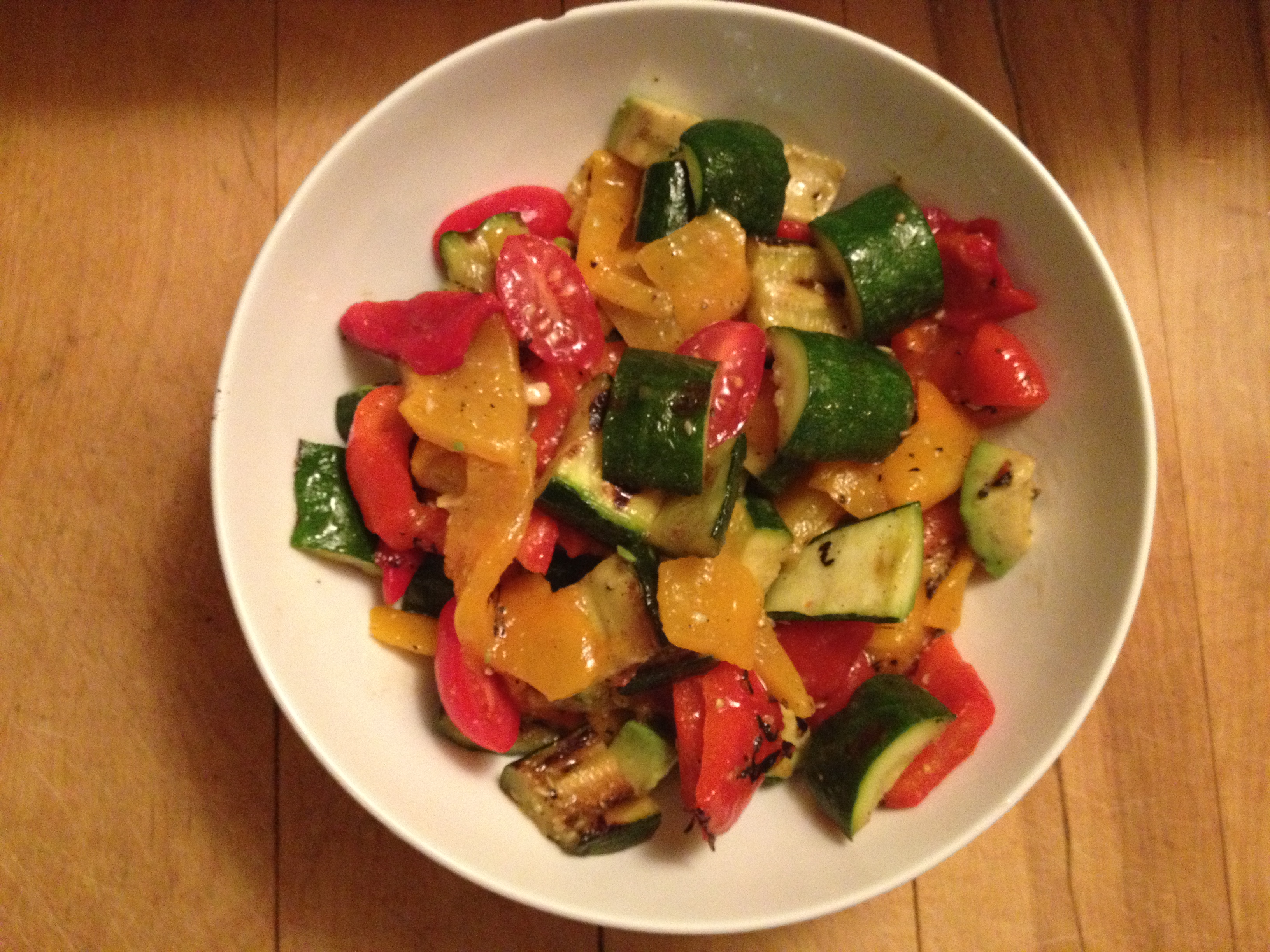- Cut avocado into large chunks and combine in a bowl with the grilled vegetables. Season with salt and pepper to taste.