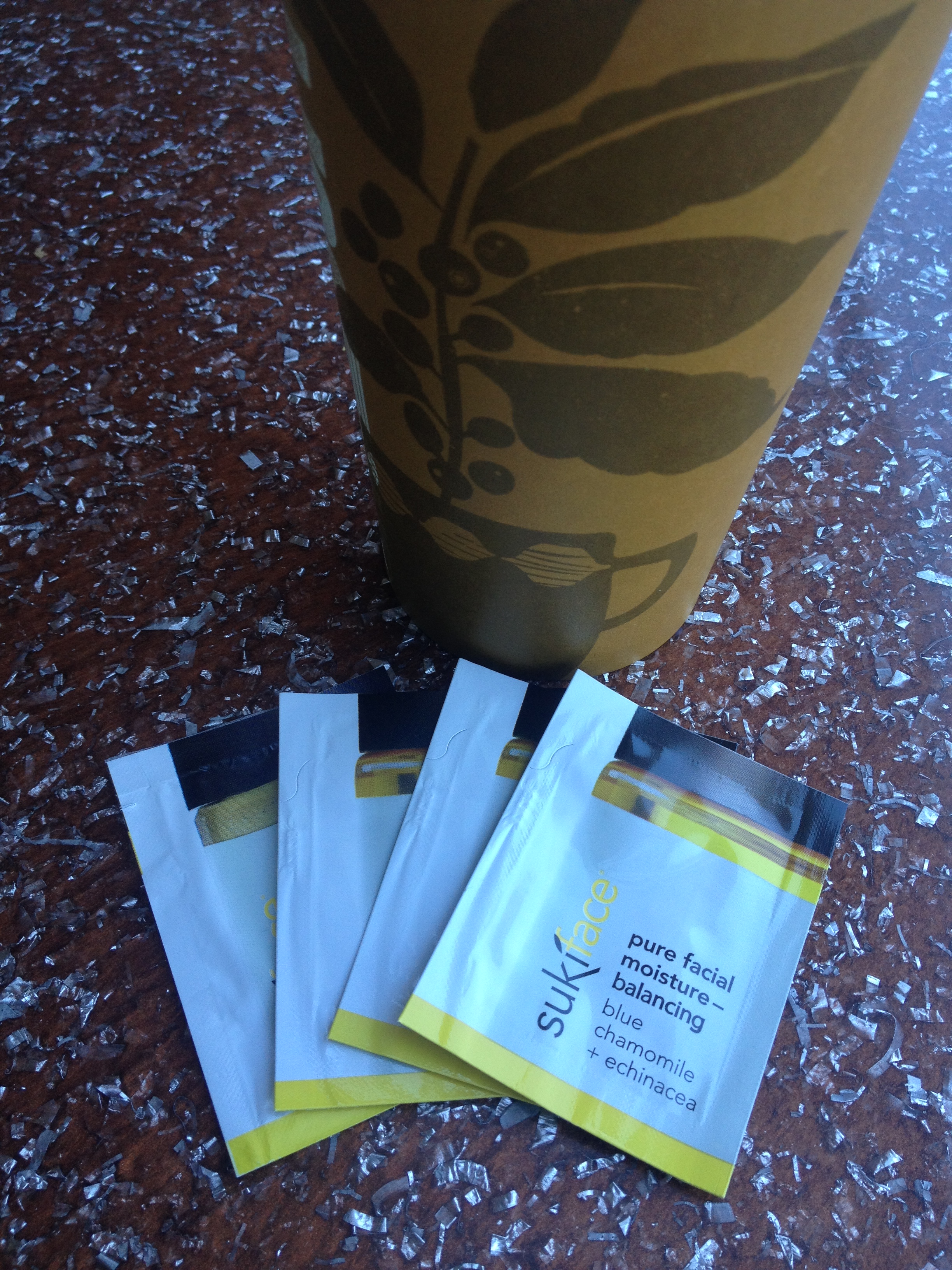 Next up was hot yoga and then a trip to whole foods. I ended up chatting with a really rad woman who was setting up a sample table for some great, natural skincare products called Suki. After chatting for a half hour about food, skincare, yoga, nutrition, etc… she gave me a couple of samples. I’m usually not very interested in skincare “products” since I generally wash my face with coconut oil, but this stuff smelled amazing and it’s always nice to check out new stuff. By the time I went to go get my Yerba Mate latte, it was luke warm. We really talked for a while…
