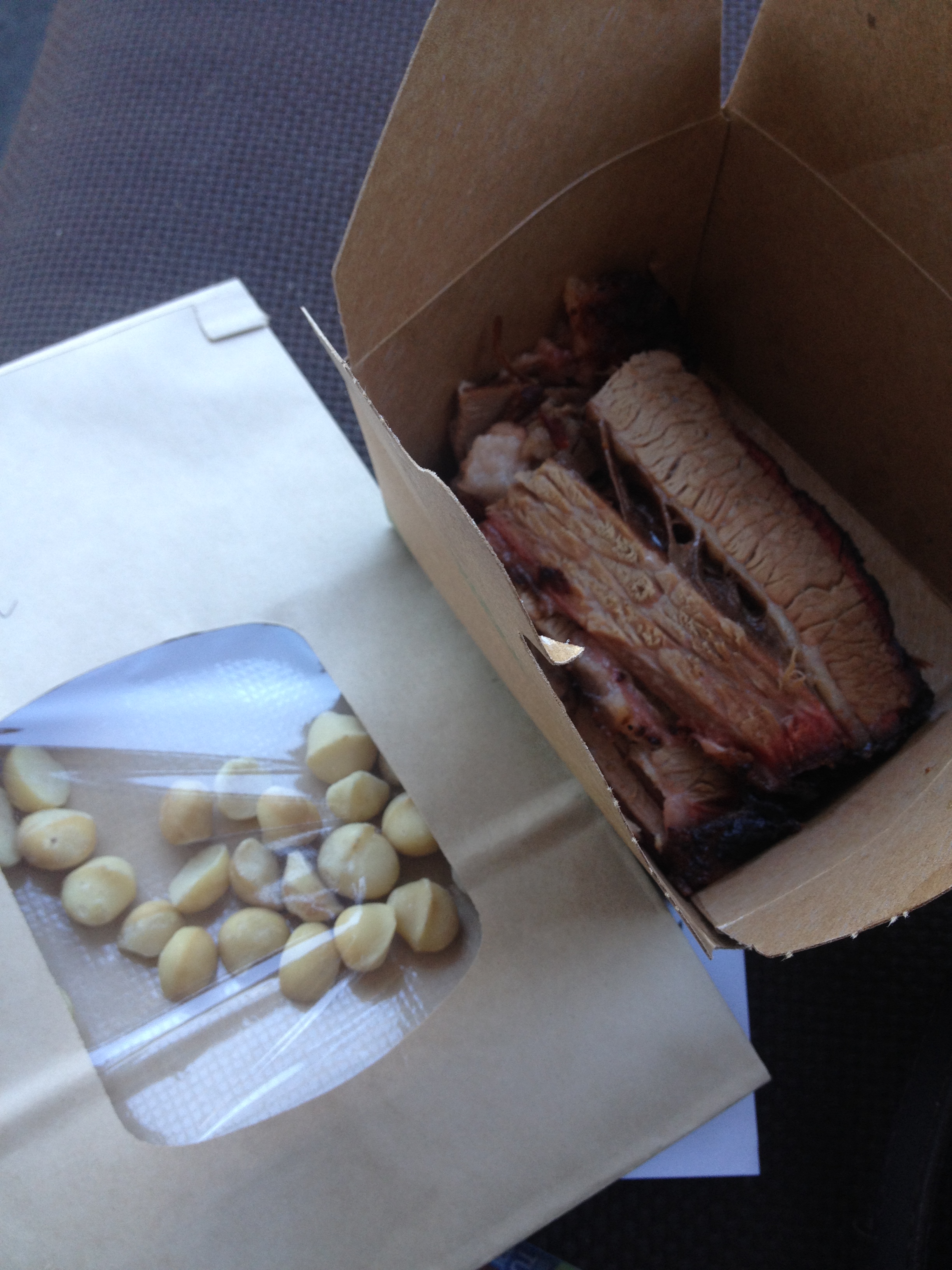 After some quiet moments out on the patio I decided I wanted lunch. So I headed back in for some delicious smoked brisket and some macadamia nuts. Fancy, I know. The smoked brisket at the Laguna Niguel Whole Foods is UNREAL. They smoke them in-house and it has the PERFECT texture and taste. I’ve had other brisket at various Whole Foods locations, and it’s just not the same.