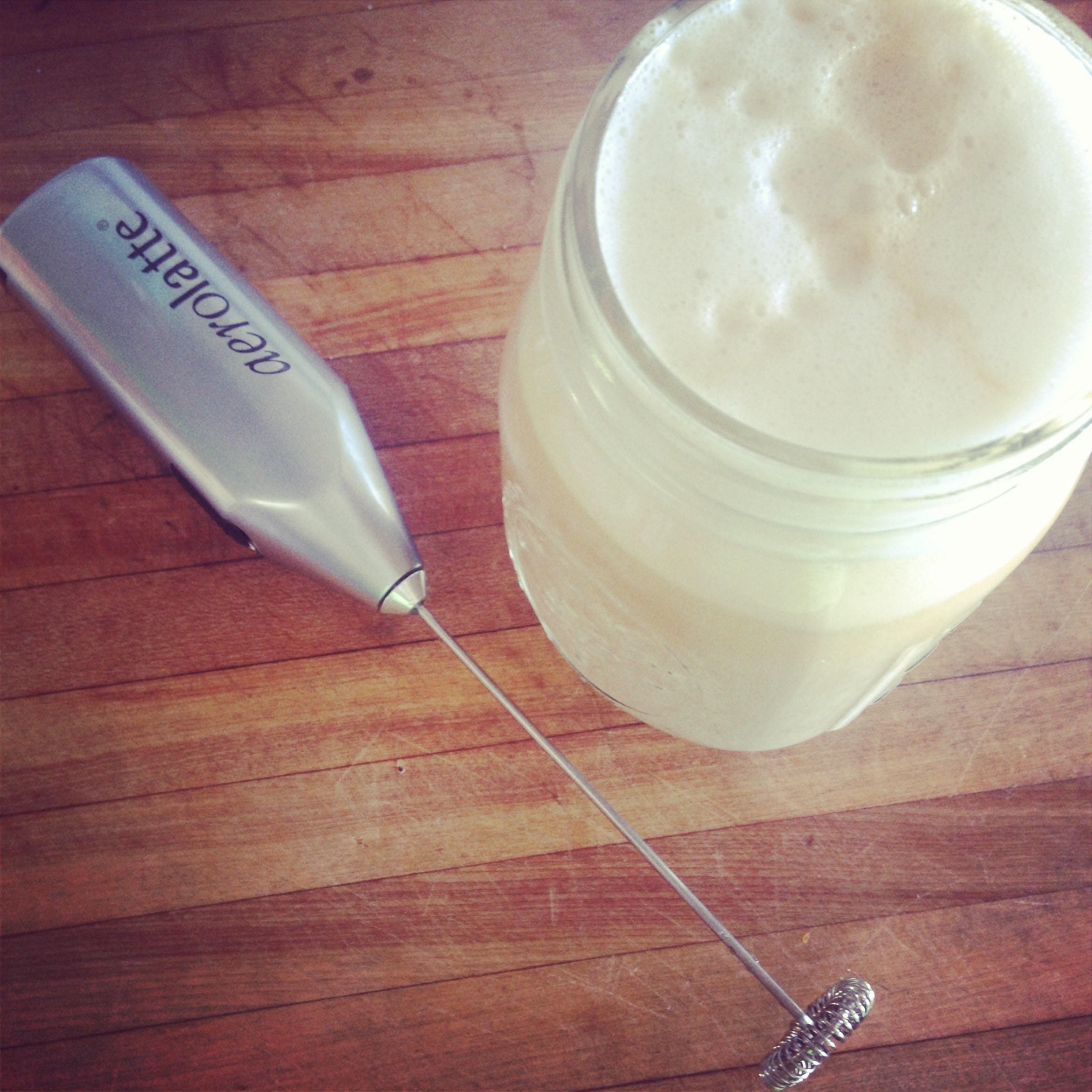 After some errand running, during which I picked up an awesome milk frother, I came home and made an iced latte with some almond/coconut milk and decaf coffee (no caf for me!)