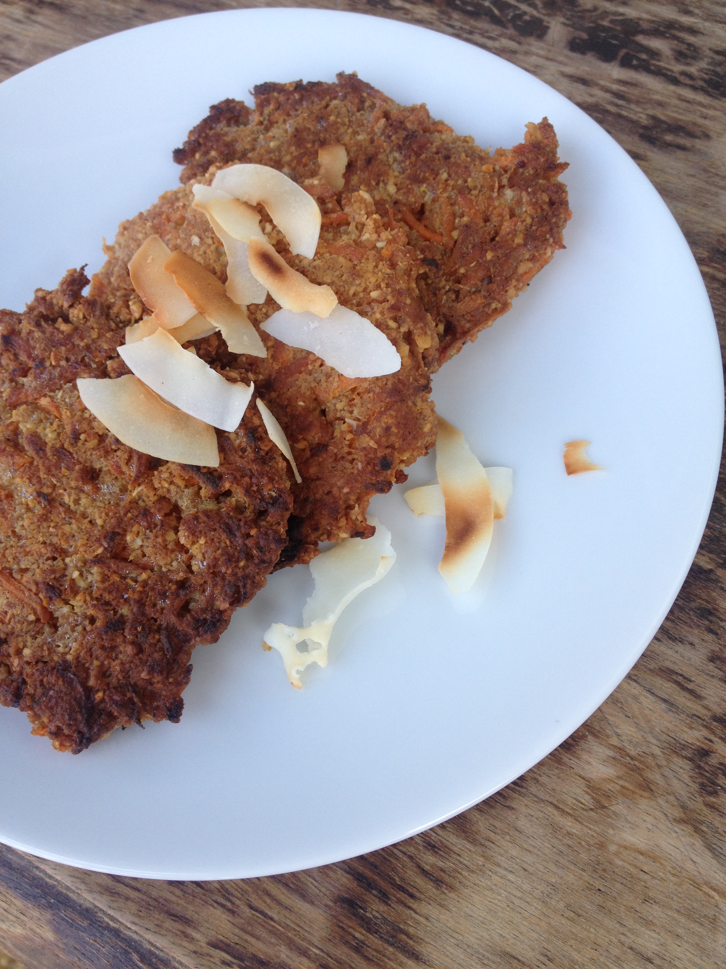 - Form palm-sized pancakes with the carrot batter and lay in the hot oil. Cook until golden and then flip.