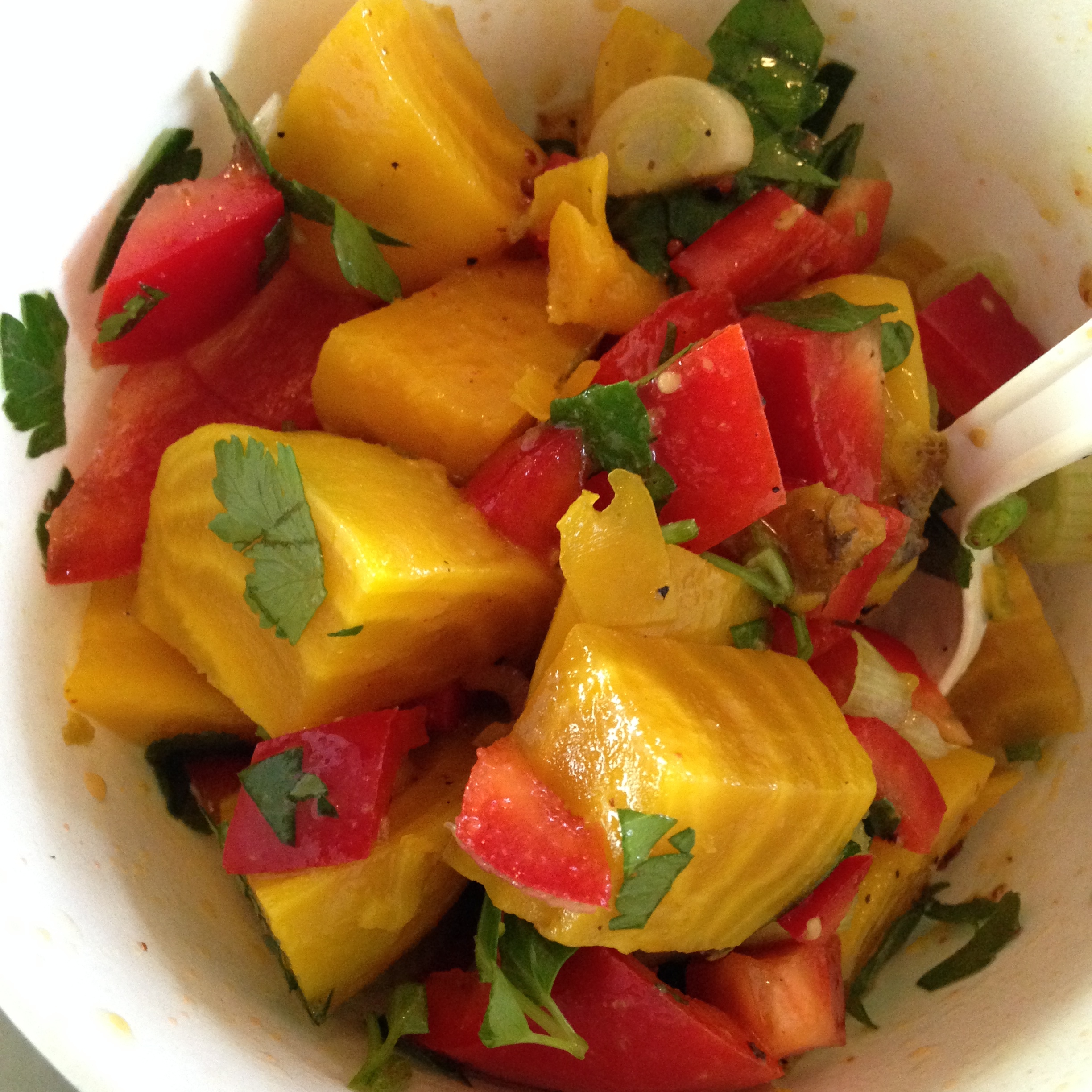 Snack: Golden Beets with red pepper, green onion, and 1/2 avocado.