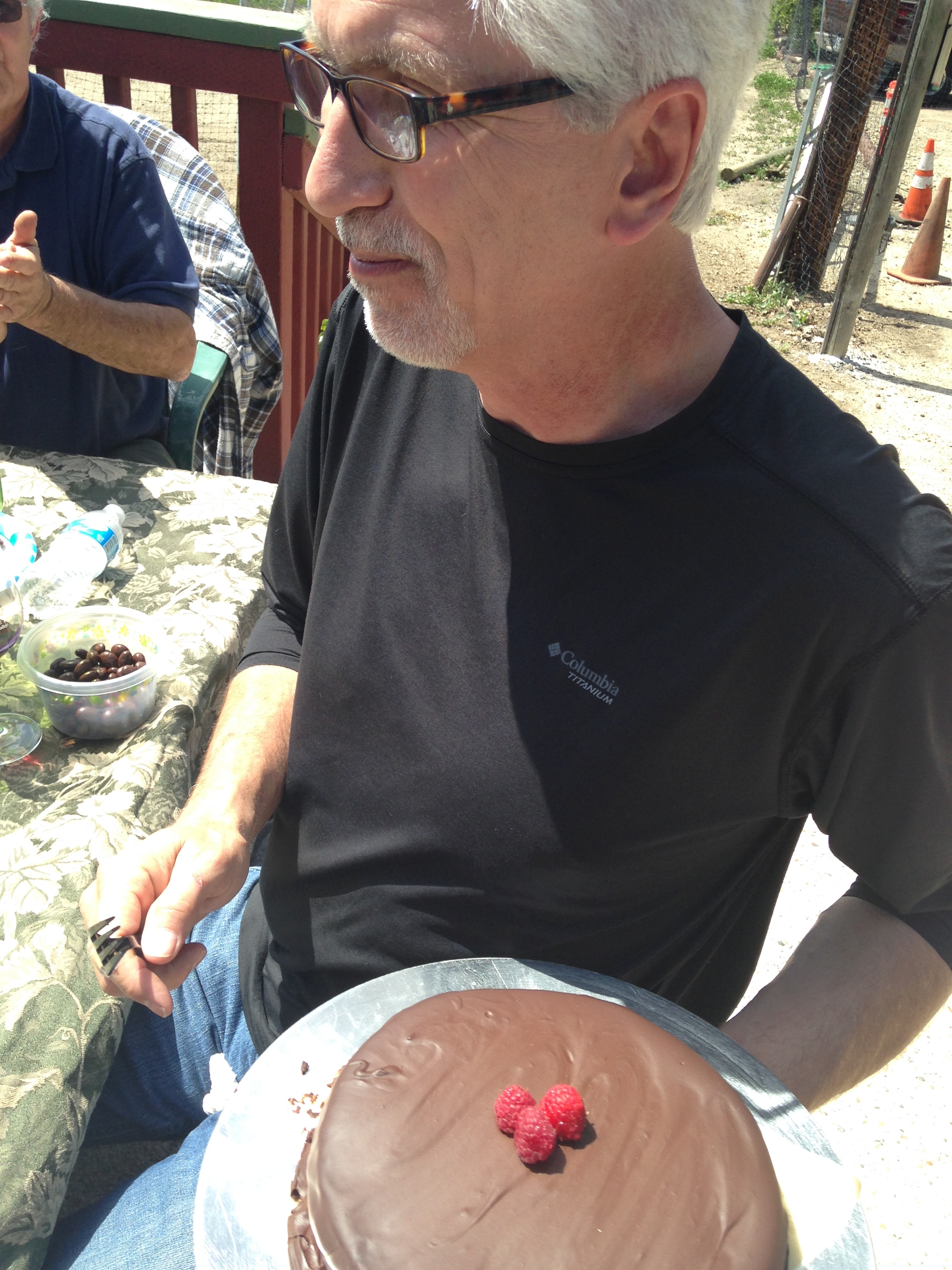 - Chill until ganache is firm and garnish with fresh raspberries, chocolate shavings, orange zest curls… Then give it to your dad and he’ll eat it all.